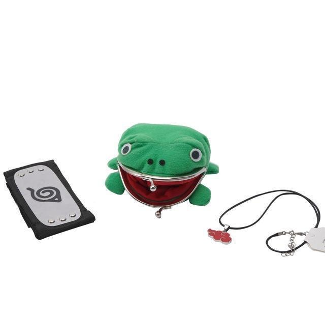 Naruto Akatsuki Green Frog Wallet with Hidden Leafe Village Headband and Necklace Cosplay Anime Itachi Sharingan Cosplay